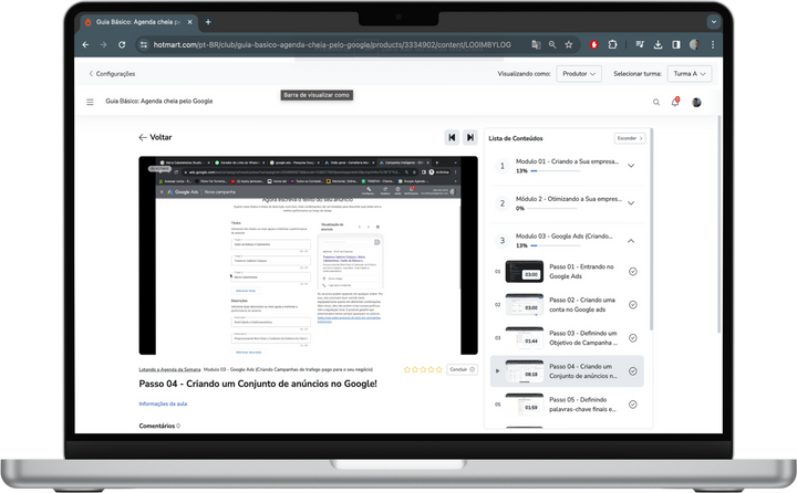 Com 4 módulos de aprendizado prático, você vai aprender a colocar seu espaço no mapa do Google e, mais importante, dominar campanhas de publicidade que realmente funcionam. Esqueça intermediários, você vai ser o protagonista!